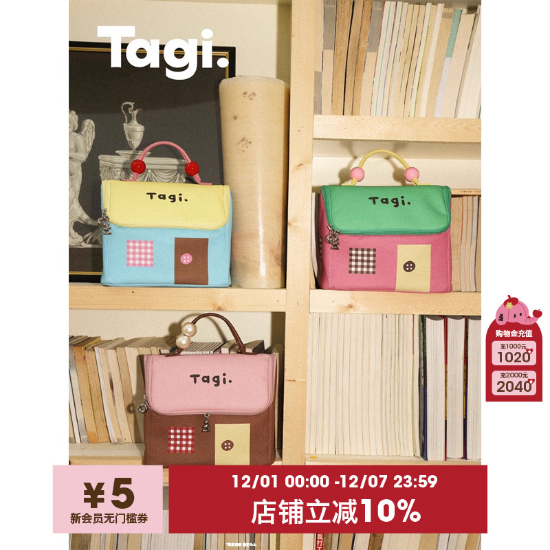 Tagi.机灵小房子防水皮质便携洗漱包大容量相机收纳包化妆包