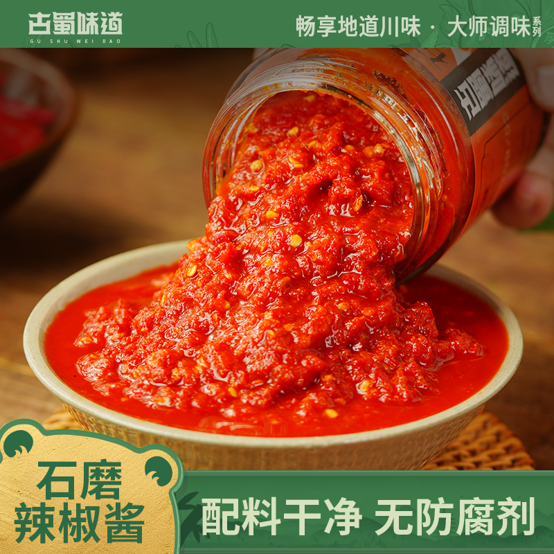 古蜀味道石磨辣椒酱超辣特辣蒜蓉香辣酱下饭酱拌面拌饭炒菜海椒酱