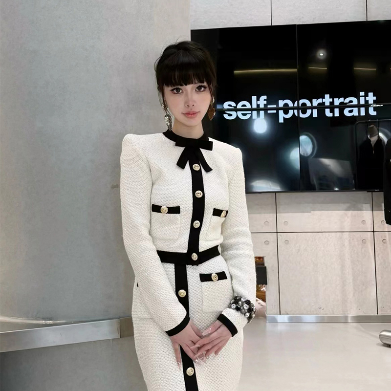 麦果时尚小香风蝴蝶结外套女富家千金名媛减龄高级感小洋装两件套
