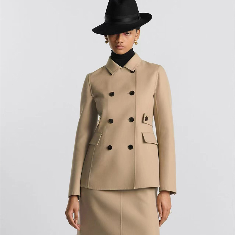 麦果时尚2025早秋季新款浅米杏蕾丝拼接短外套半裙芭蕾风套装