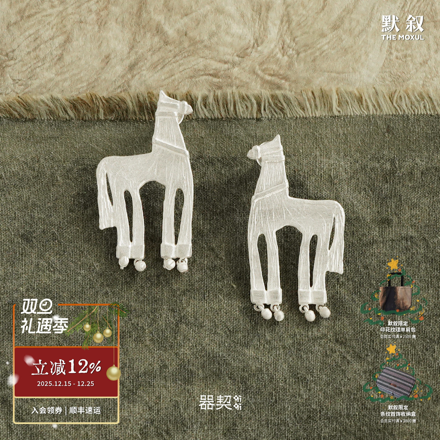 QIQI器契 信物游马耳环 纯银原创设计黑檀牛骨银饰耳钉耳饰 默叙