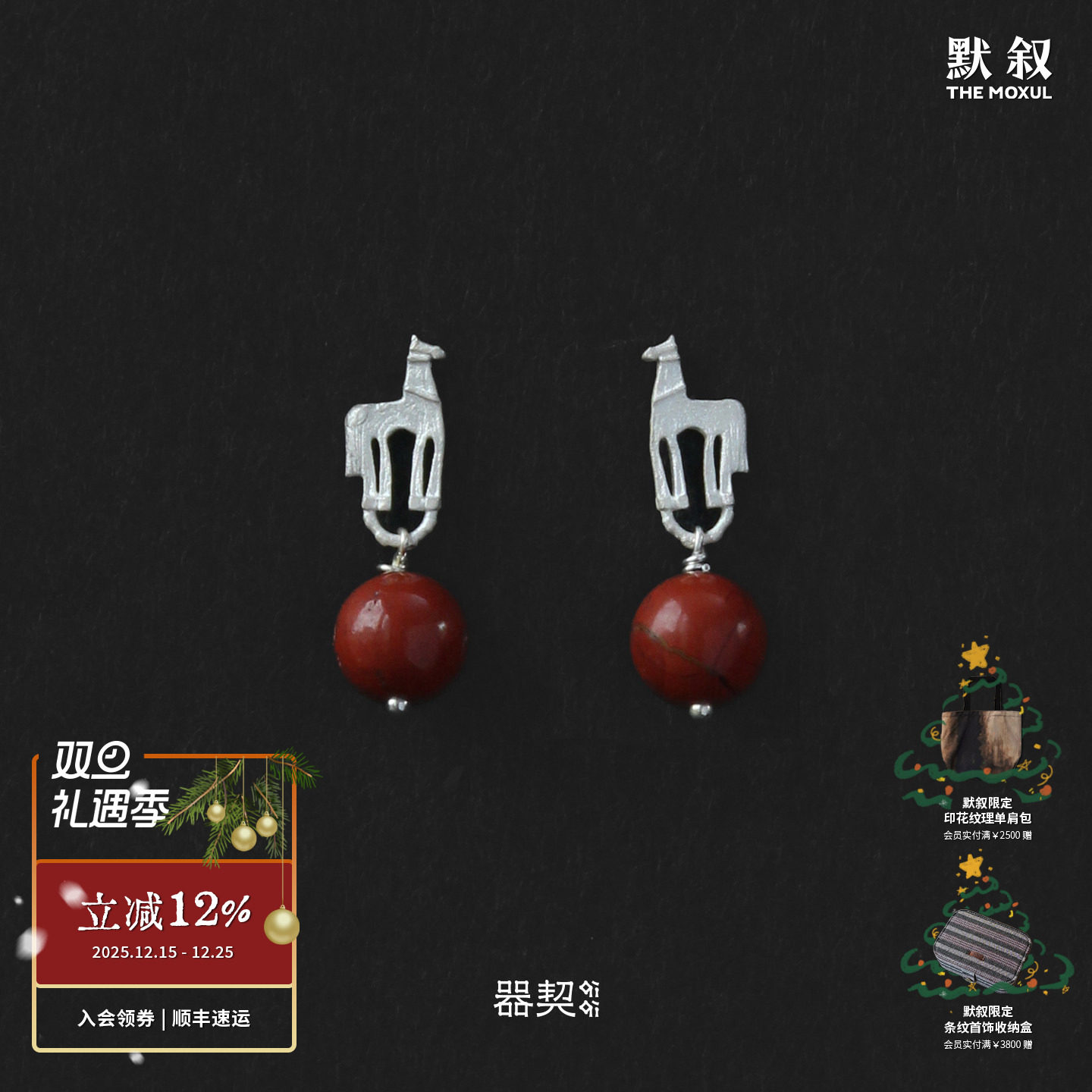 QIQI器契 游马乌金圆珠耳环 纯银原创设计红石银饰耳钉耳饰 默叙
