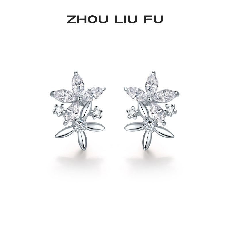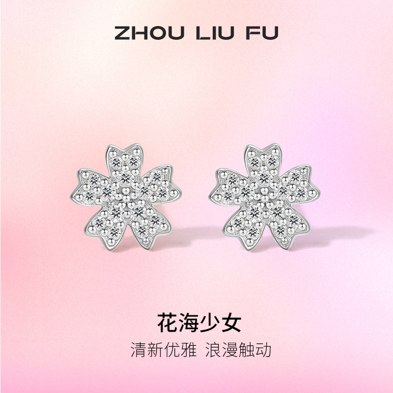 周六福S925银饰耳钉甜美花朵耳饰耳环轻奢高级感送女友 节日礼物