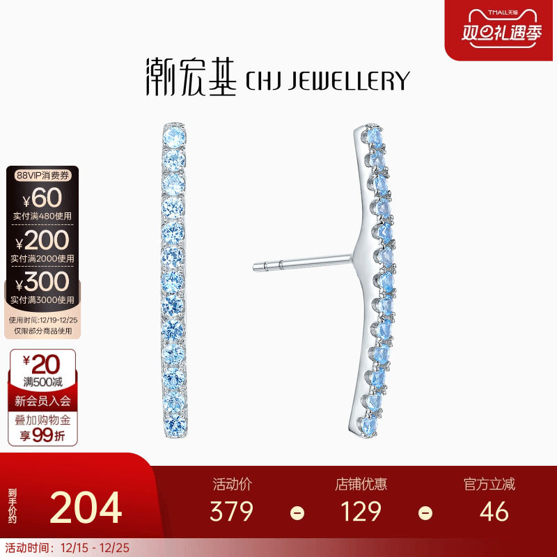 潮宏基追光s925银耳饰银饰耳钉时尚潮酷ins职场通勤送女友礼物