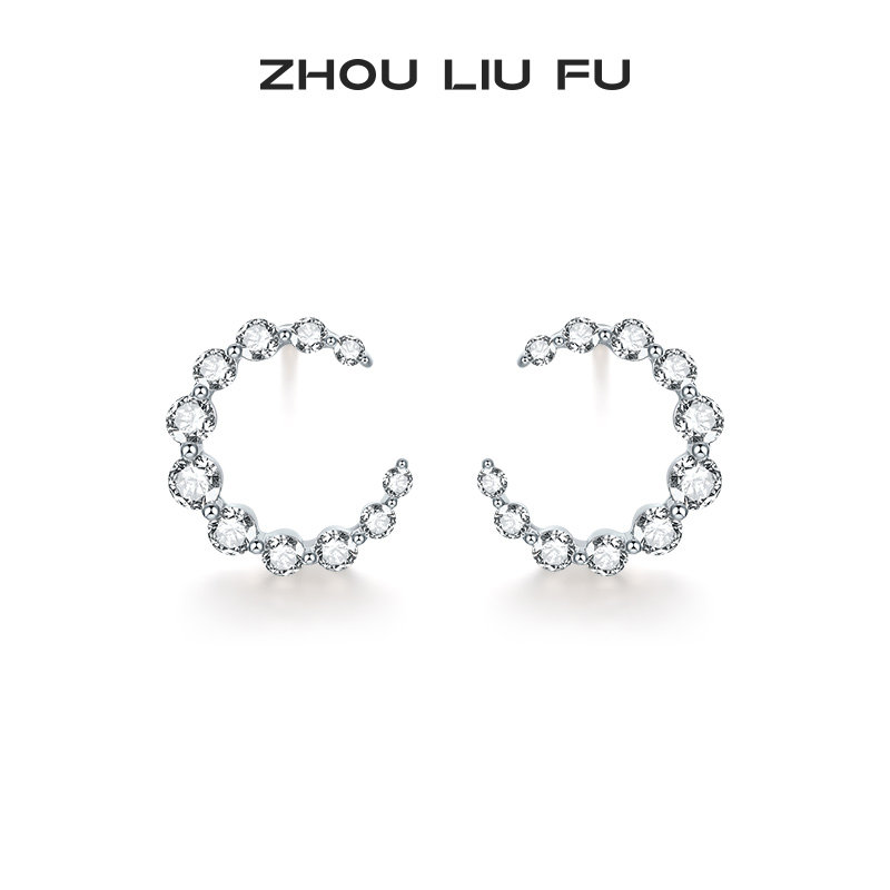周六福S925银饰耳钉甜美月牙耳饰耳环轻奢高级感送女友 节日礼物