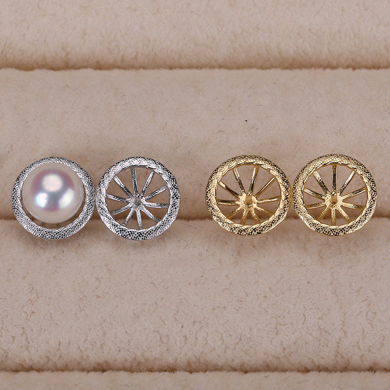 s925纯银银饰耳钉耳针配件 珍珠饰品diy手工制作耳饰一对托盘空托