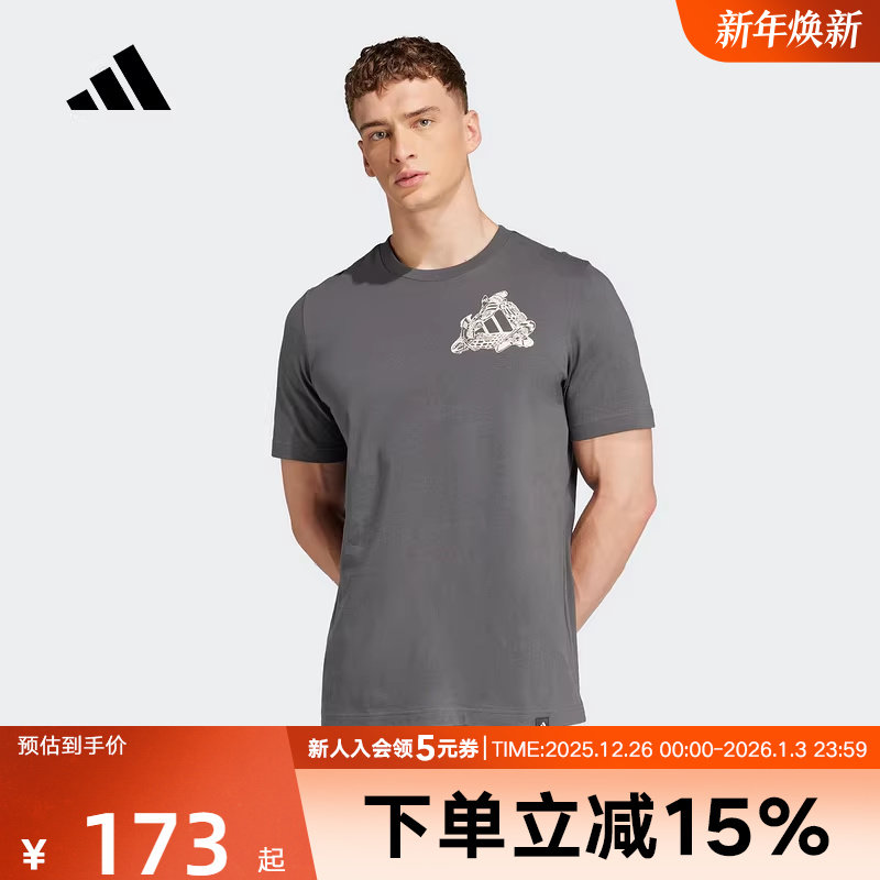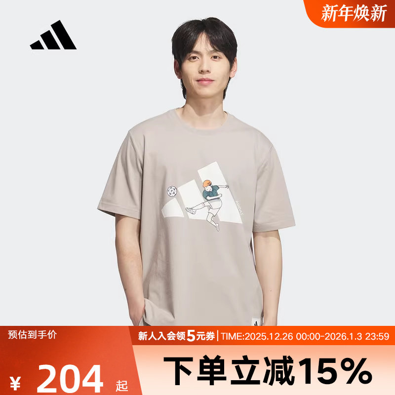 adidas阿迪达斯2025夏趣味徽标足球风半截袖男宽松短袖T恤JD8211