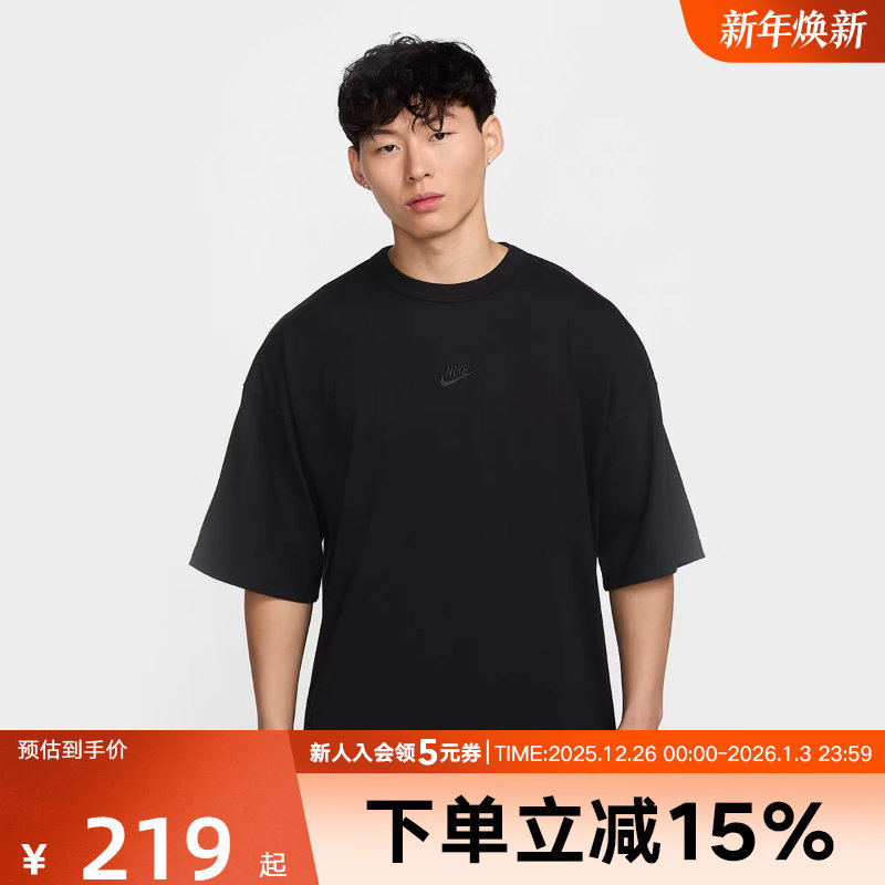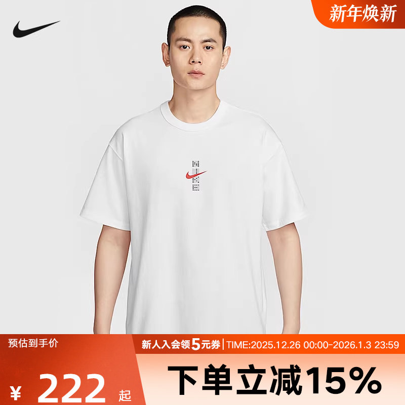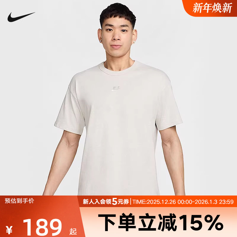 耐克半截袖男T恤宽松舒适棉夏季休闲刺绣柔软运动短袖DO7393-114