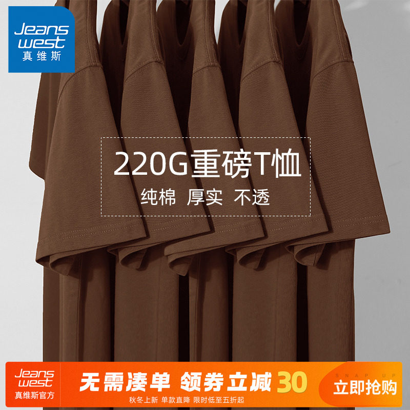 GV真维斯复古男士短袖T恤夏季纯棉宽松半截袖男款日系纯色衣服男A