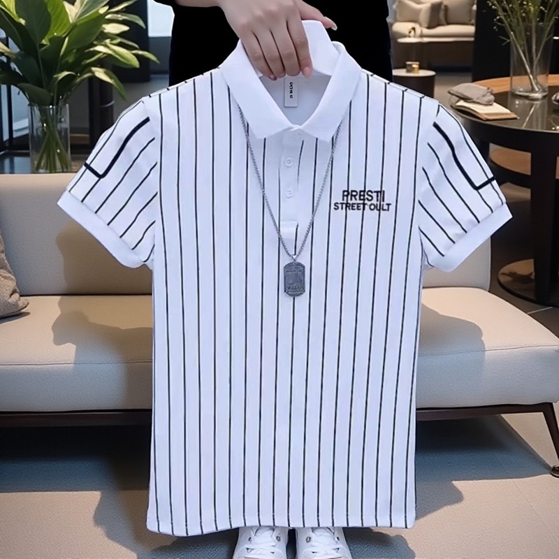 新款网红潮男条纹Polo衫短袖男韩版修身帅气百搭潮流帅气半截袖男