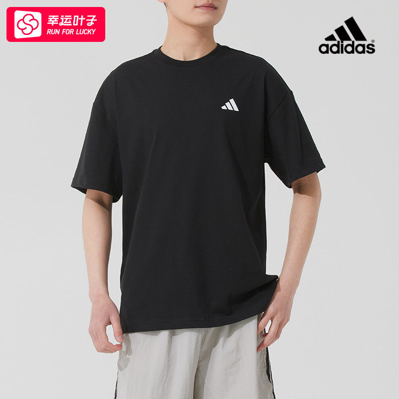 ~阿迪达斯半截袖男装2025新款休闲透气上衣男士圆领短袖T恤JN6766