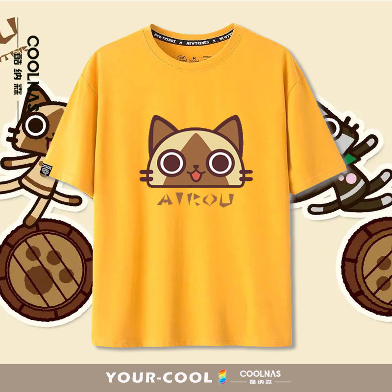 怪物猎人艾露猫游戏周边短袖t恤纯棉宽松大码体恤半截袖男女半袖