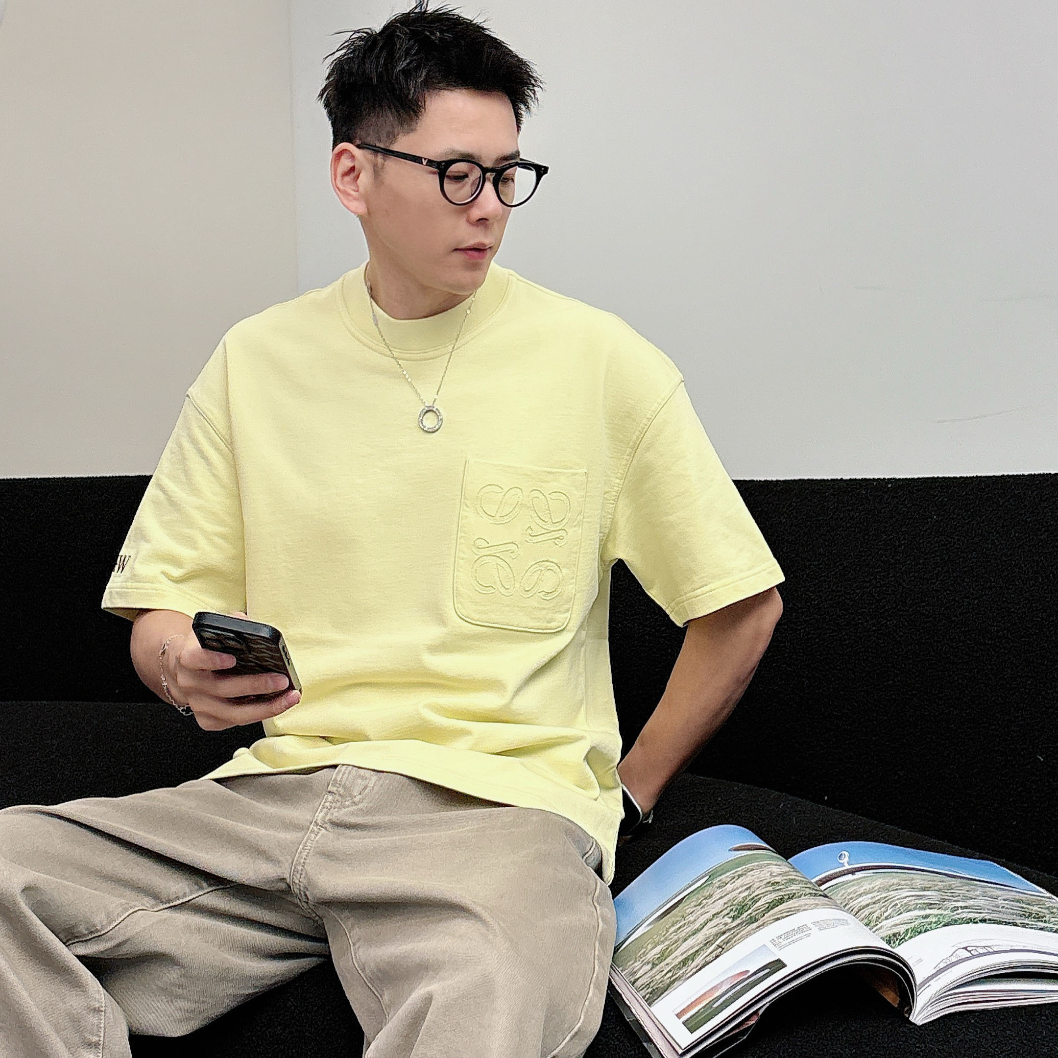 2025夏季新款百搭休闲重工钢印加厚短袖T恤上衣半截袖男潮韩版ins