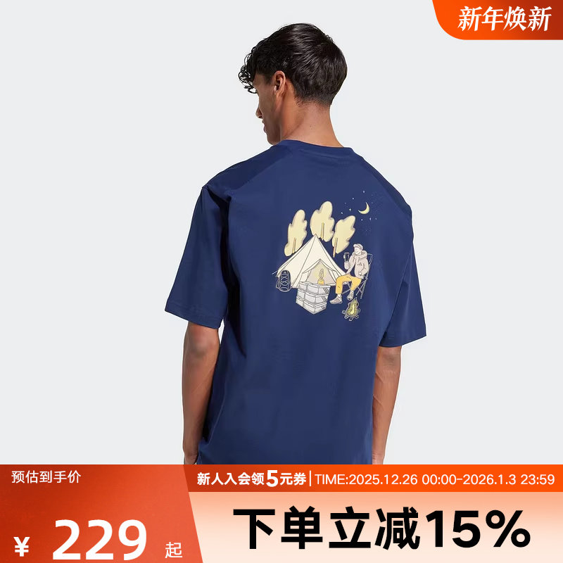adidas阿迪达斯夏户外深蓝半截袖男涂鸦风宽松短袖T恤JJ3972