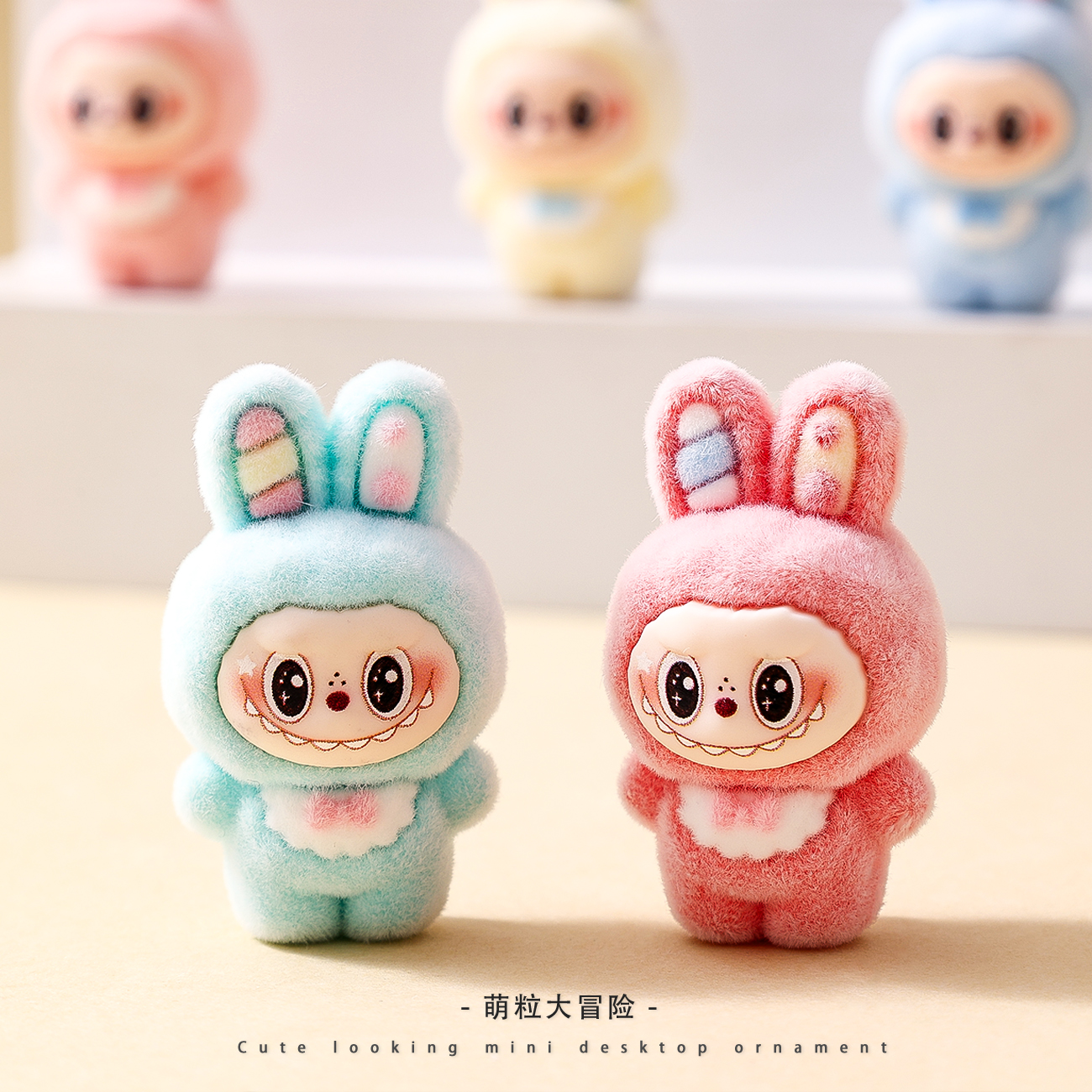 新款植绒波点怪兽小兔萌粒公仔桌面小摆件对对碰盲盒盲袋配件批发