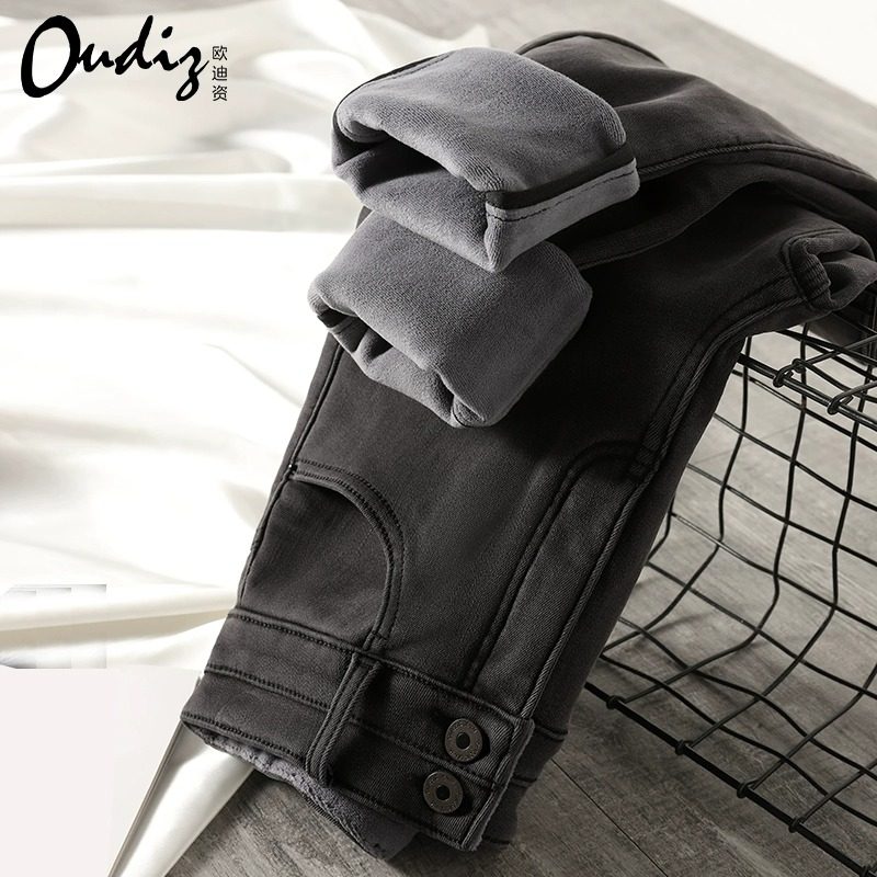 古早美女~丰胯韩系细腰显瘦弹力高腰抓加绒小脚裤秋冬新款牛仔裤