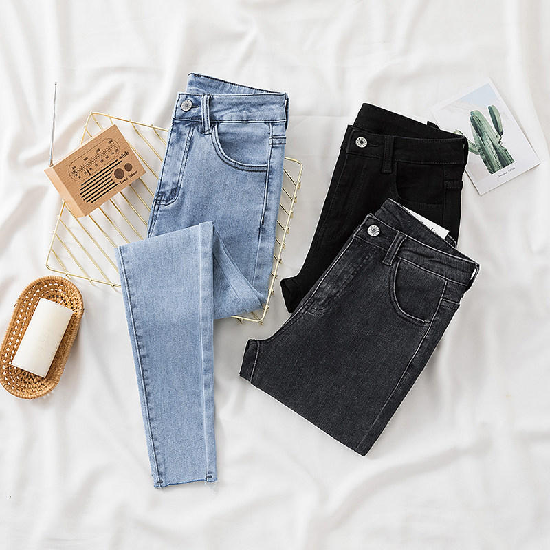 - 高腰牛仔裤女 九分裤 学生 韩版