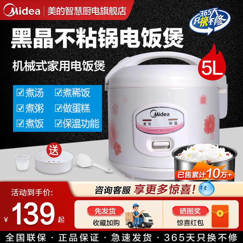 美的机械式家用电饭煲5L大容量电饭锅老式4-6-8人多功能煮饭煲汤