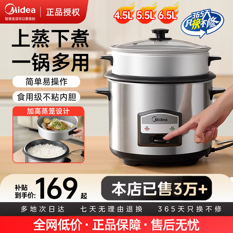 美的电饭锅3到4人家用4-5-6升老式电饭煲家用大容量自动保温蒸锅