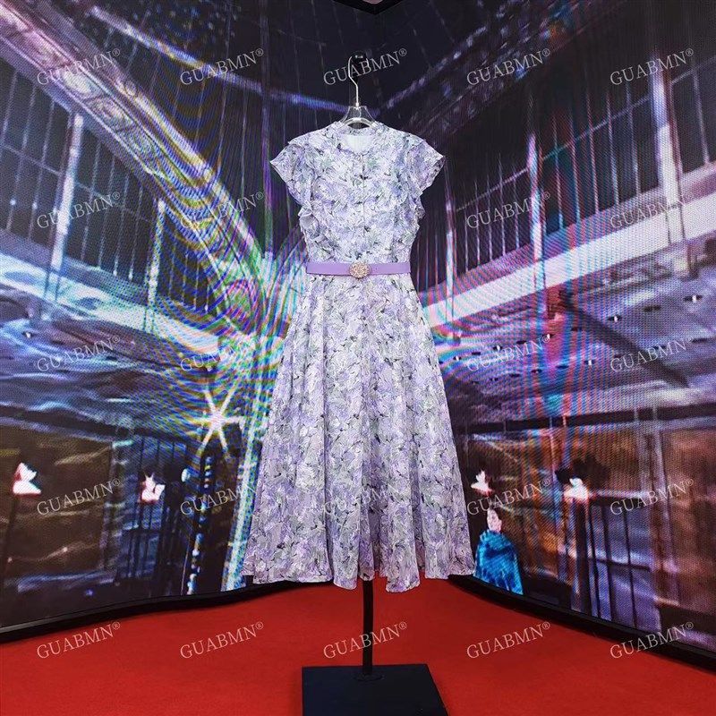 高级感紫色雪纺碎花蝴蝶结系带连衣裙夏季女装新款仙女气质长裙子