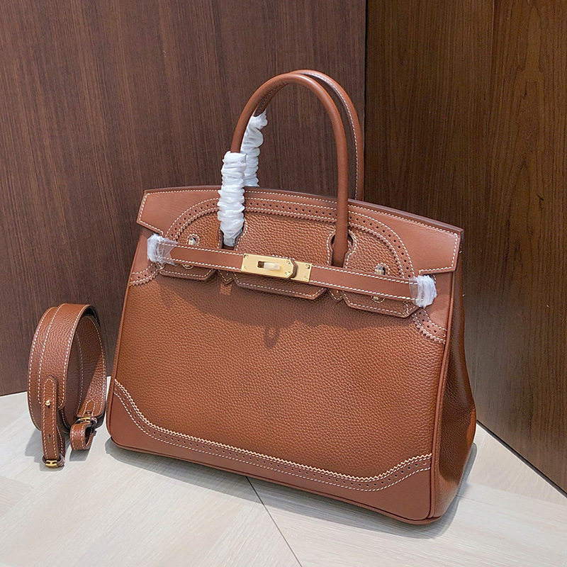 头层牛皮荔枝纹铂金包真皮女包凯莉包手提大包2025新款单肩斜挎包