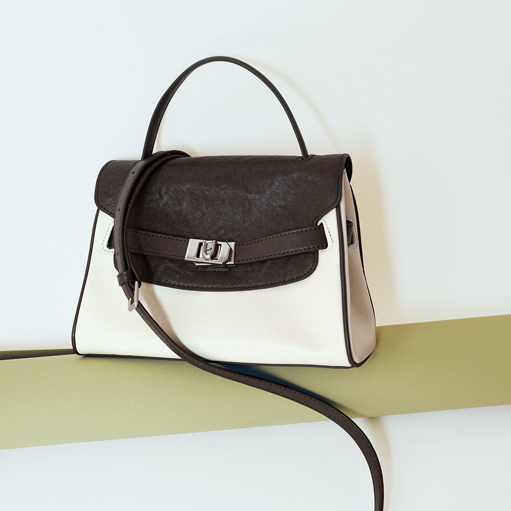 SEOULCHIC 高级感真皮手提包2024新款撞色帆布包铂金包单肩斜挎包