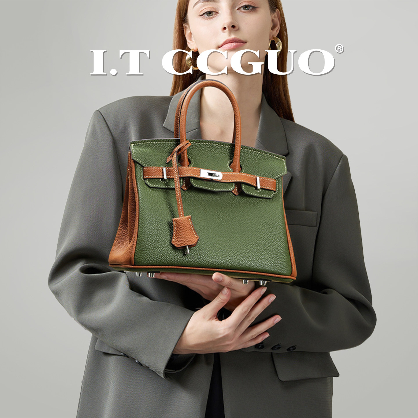 I.TCCGUO铂金包真皮大容量单肩包百搭女上班族小众高级感手提包