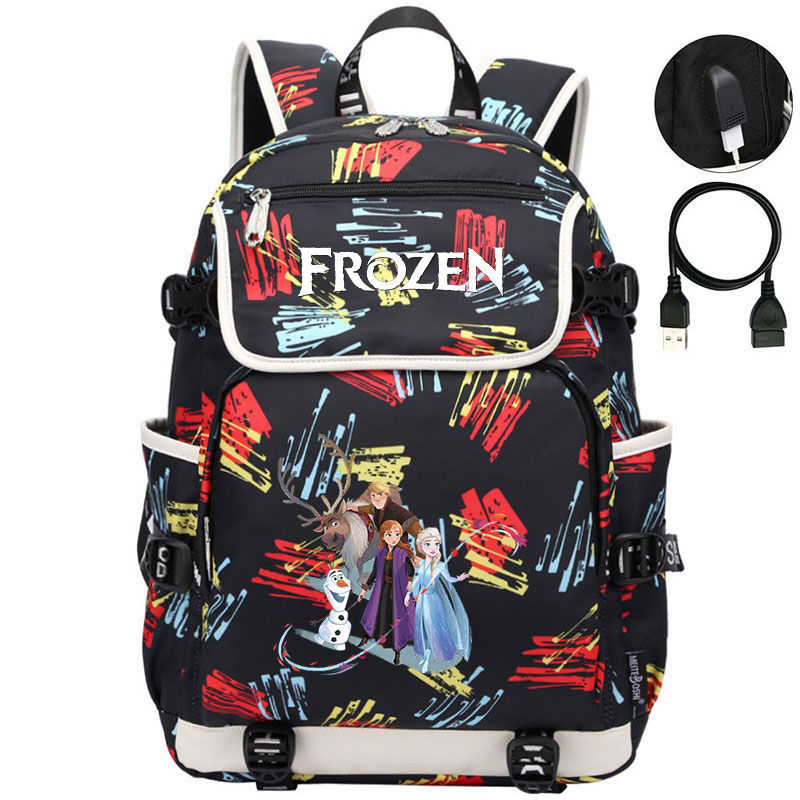 2025冰雪奇缘休闲usb双肩包中大学生简约双肩背包时尚大容量书包