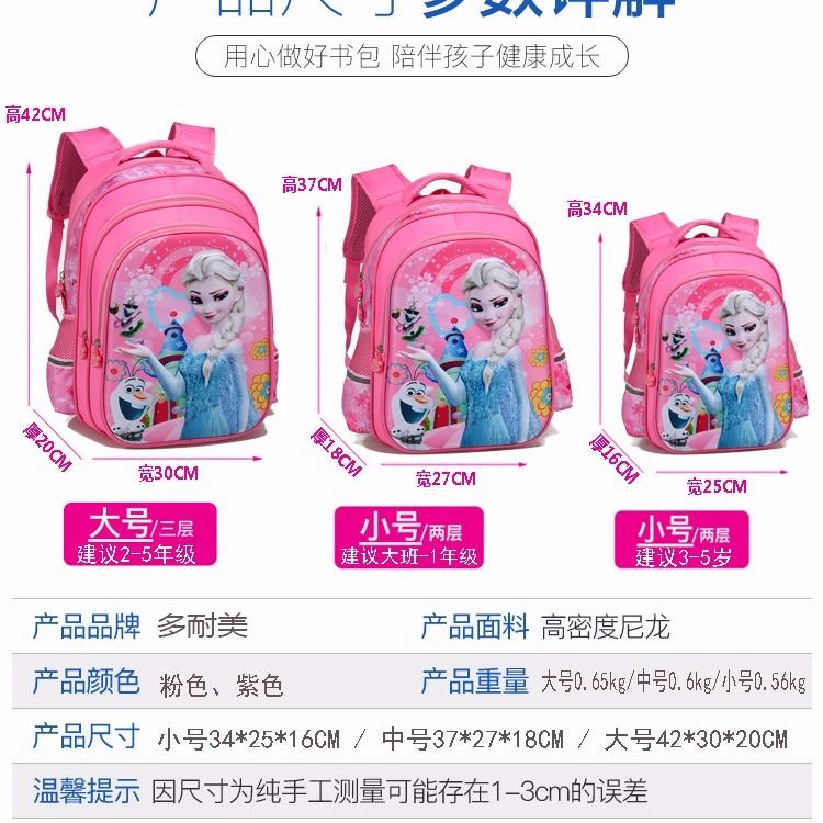 迪士尼儿童书包女孩一到三年级冰雪奇缘减负护脊大容量儿童双肩包