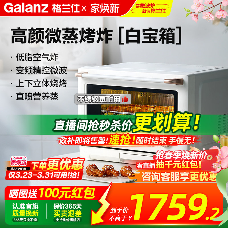 政府补贴格兰仕变频微波炉25L微烤炸一体机空气炸锅电烤箱DR直播