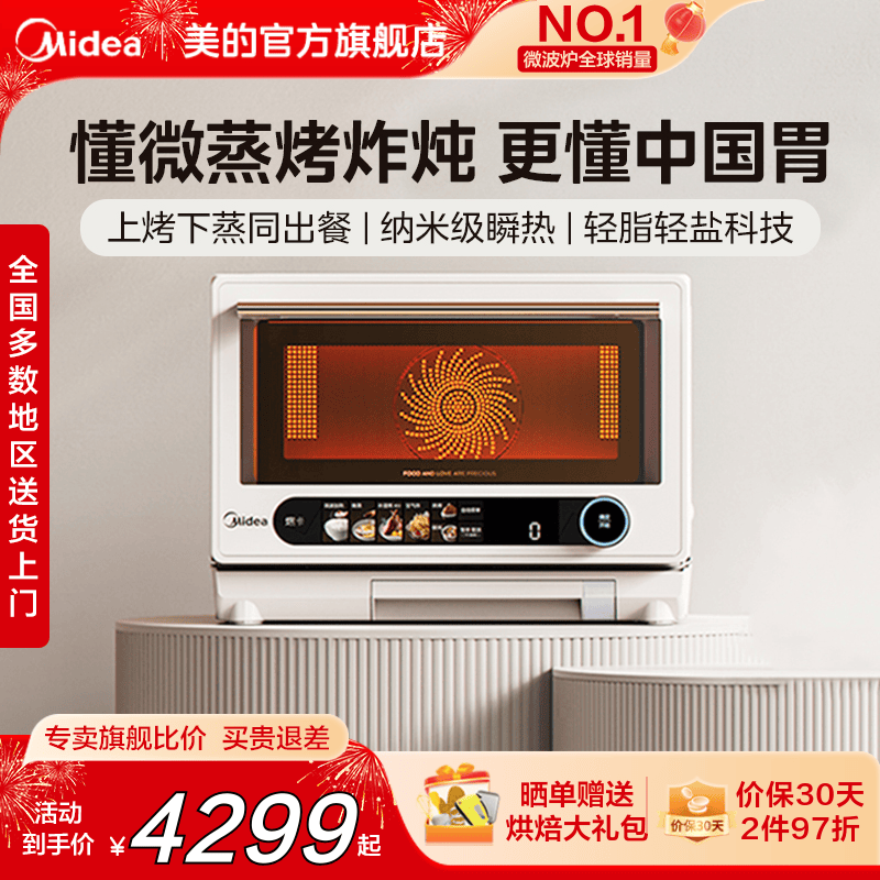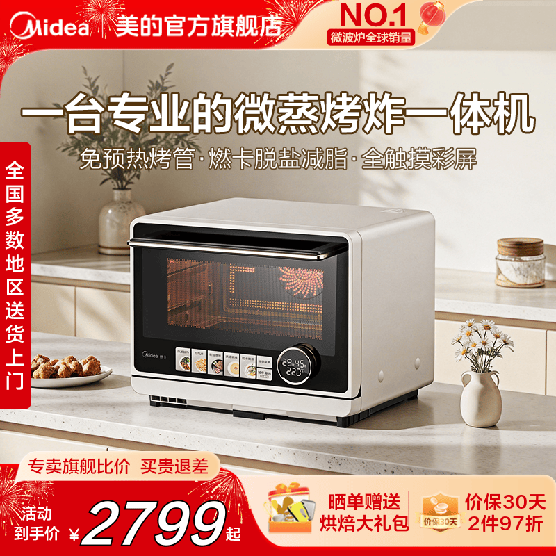 美的寻味pro微波炉家用微蒸烤炸一体机烤箱蒸箱三合一官方正品G21