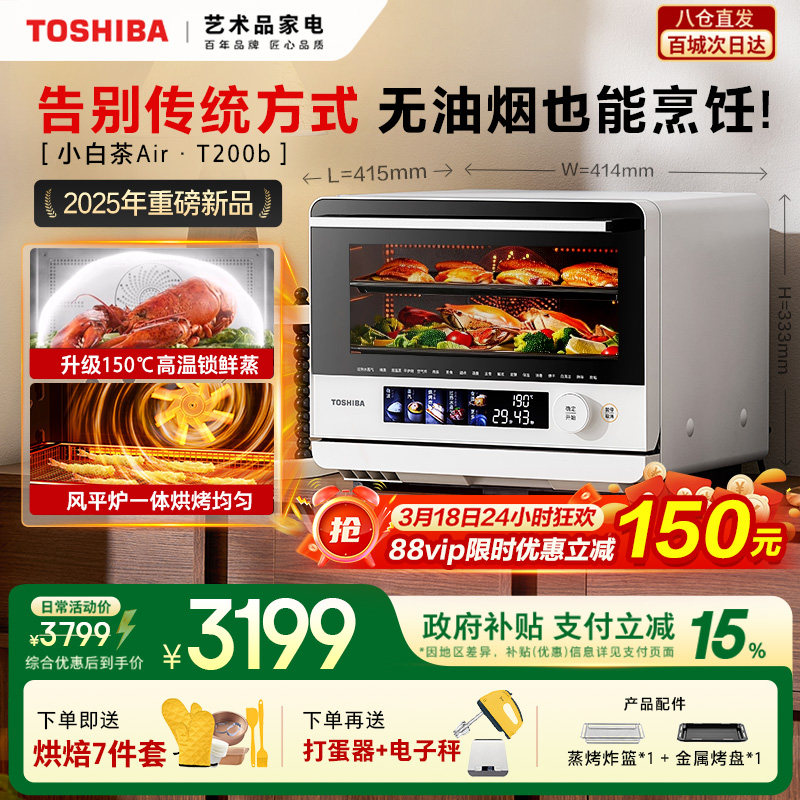东芝小白茶T200b微蒸烤一体机Air家用微波炉水波炉烤箱空气炸礼物