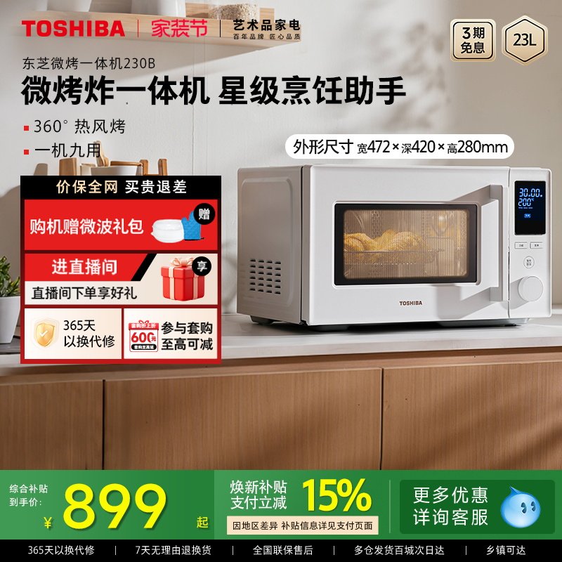 东芝微波炉家用230B烤箱微烤炸三合一体机台式23L变频大容量官方