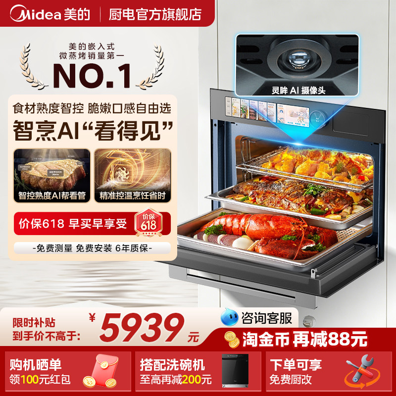 美的旗舰爆款R6微蒸烤一体机嵌入式蒸烤箱家用电蒸箱智能微波炉