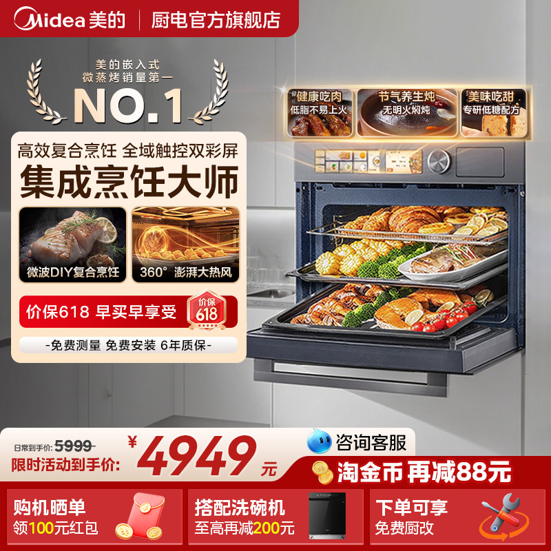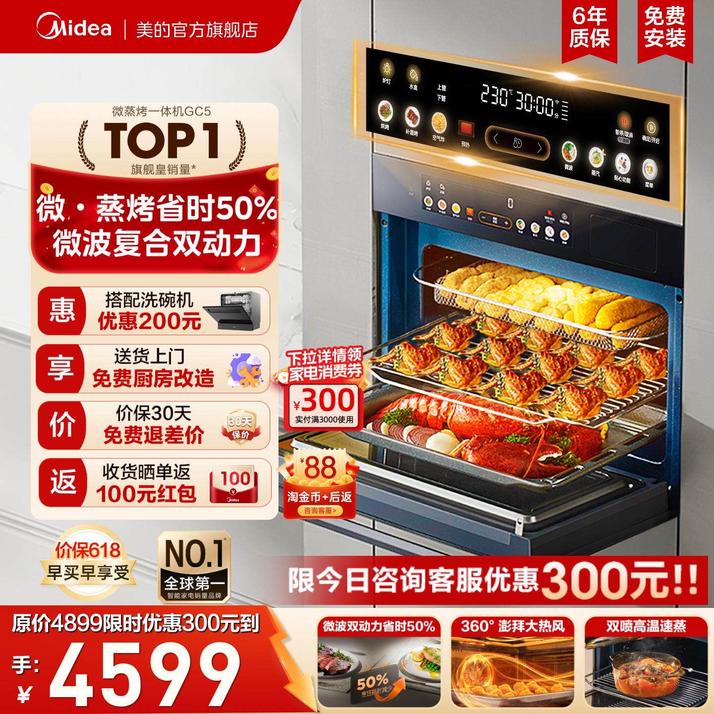 【清仓】美的GC5微蒸烤一体机嵌入式微波炉蒸汽烤箱炸炖五合一