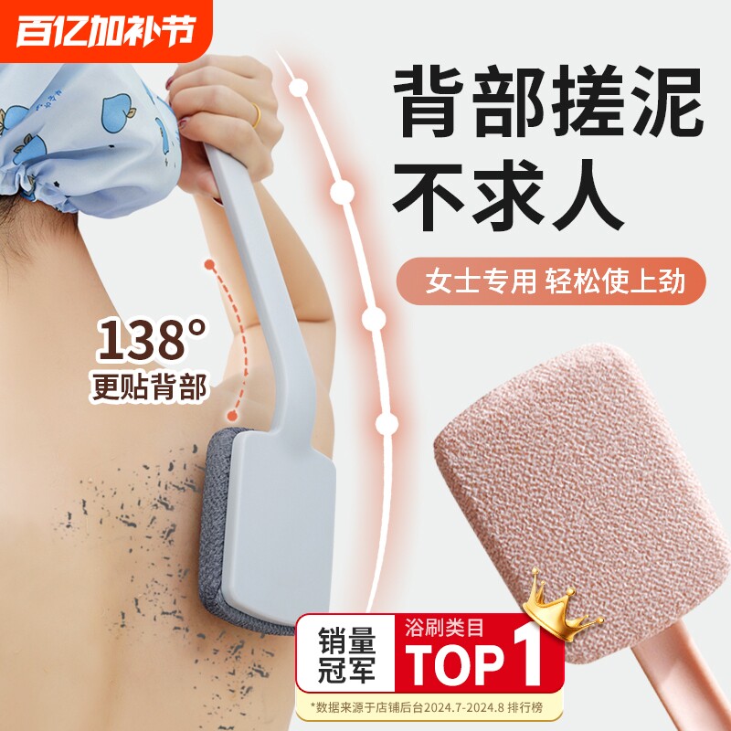 洗澡刷搓背不求人长柄刷软毛刷子双面沐浴刷搓泥去灰搓澡刷背神器