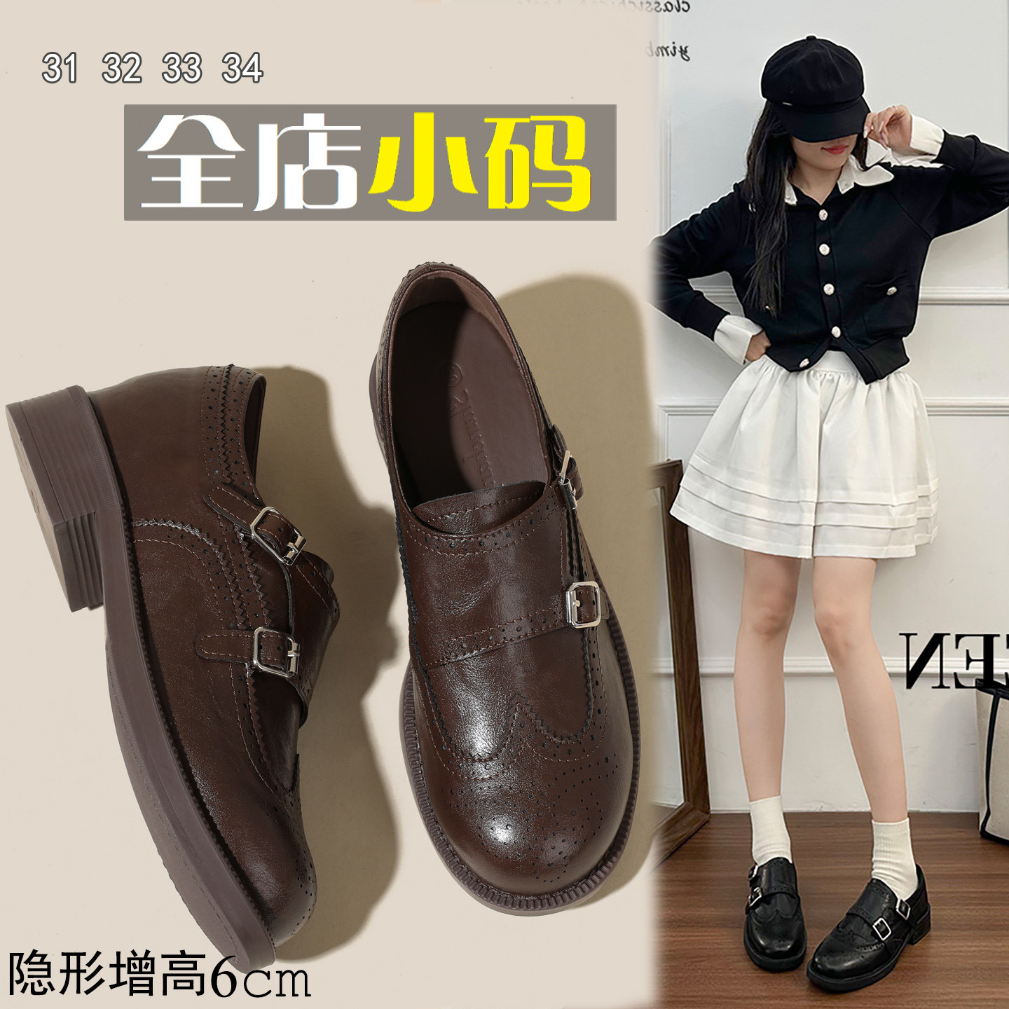 小码女鞋313233英伦风皮带扣乐福鞋复古布洛克厚底小皮鞋中跟单鞋