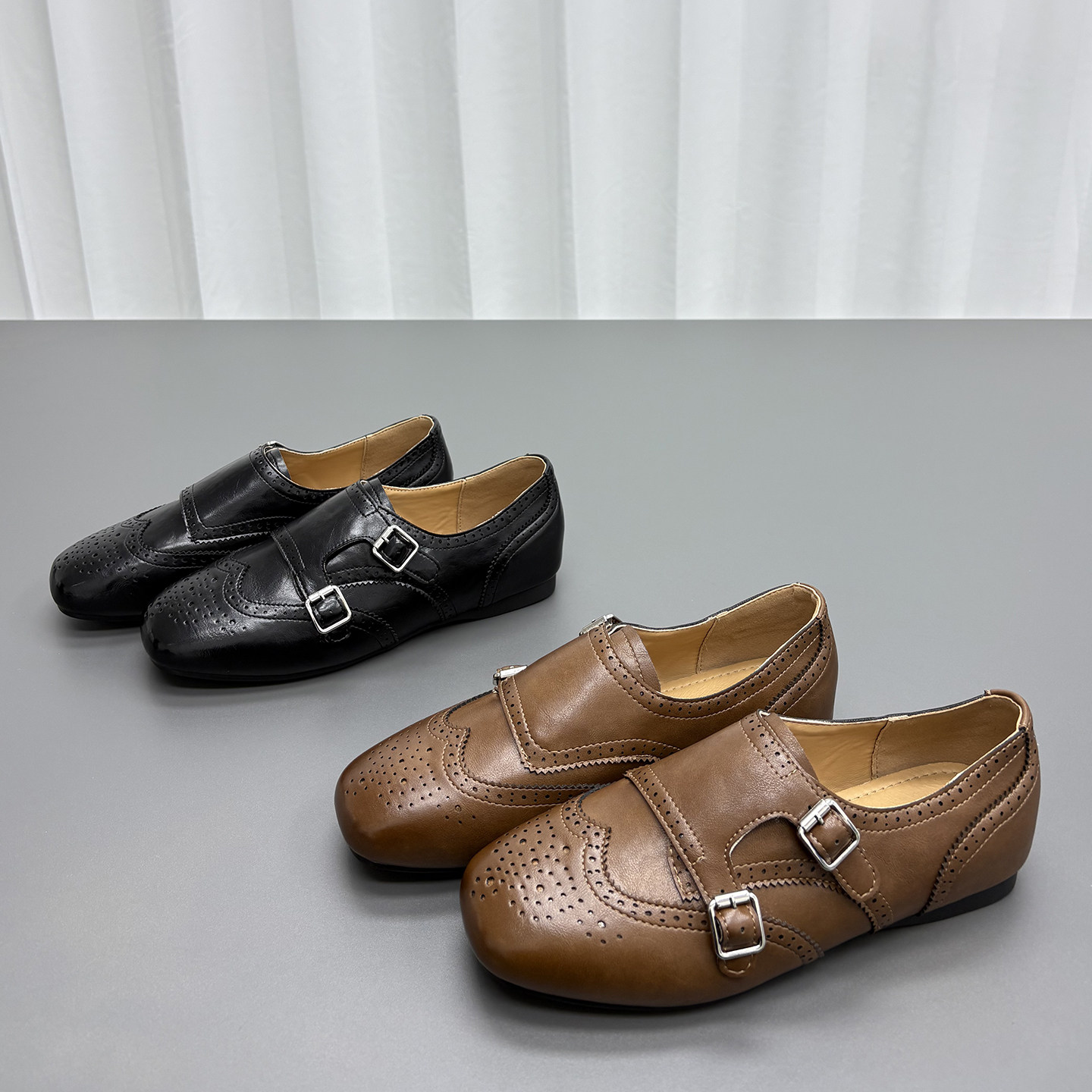 小羊轻奢英伦风厚底小皮鞋女雕花布洛克德比鞋双搭扣真皮孟克单鞋