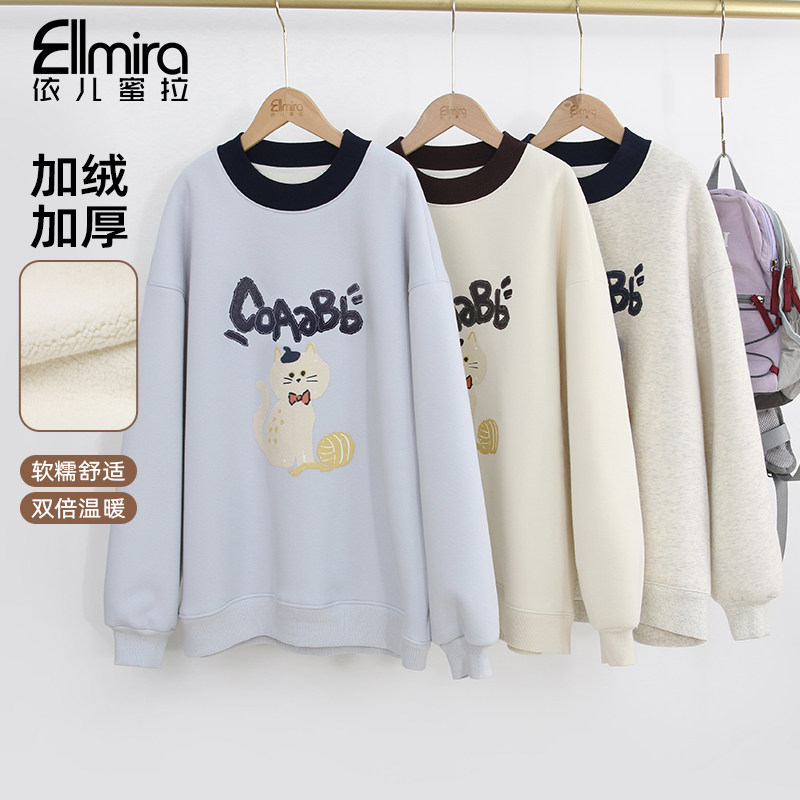 9753女童卫衣圆领冬装加绒加厚打底儿童上衣休闲套头洋气大童潮