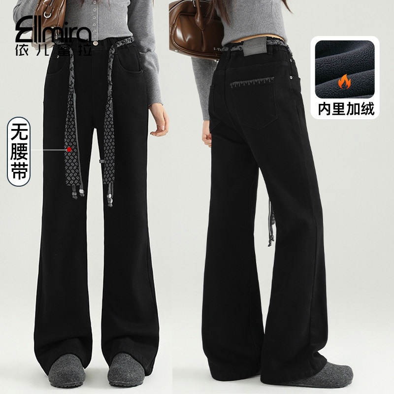 9740~9741女童直筒裤叫加绒特厚一体绒窄版牛仔裤冬季女大童长裤