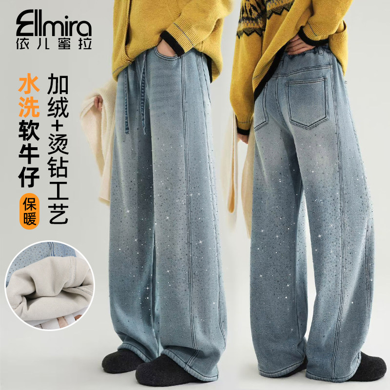 9796女童牛仔裤加绒加厚烫钻老爹裤窄版冬季中大童长裤洋气高品质