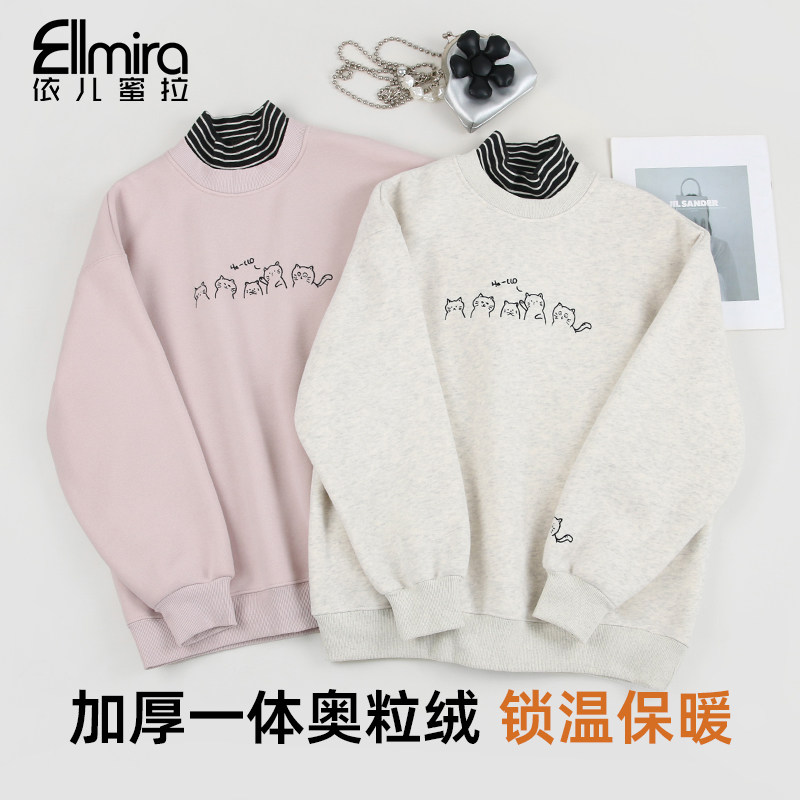 9635女童卫衣秋冬加绒加厚假两件儿童上衣套头宽松洋气大童潮
