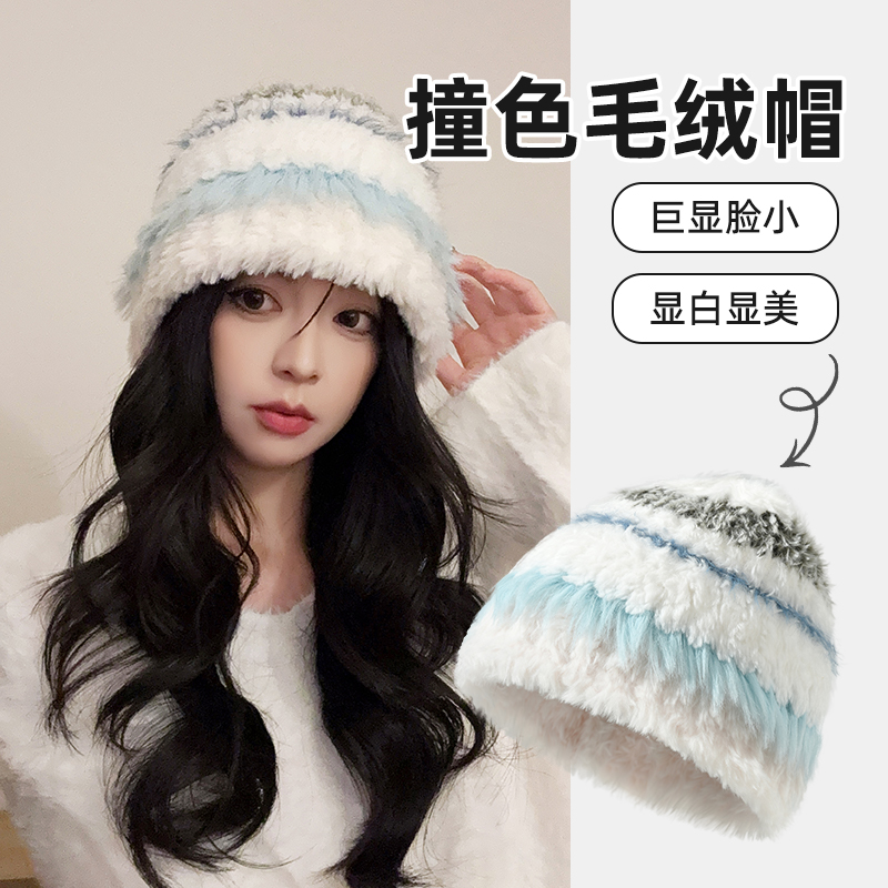木村耀司毛绒绒帽子渔夫帽女秋冬季保暖针织毛线帽显脸小2025新款