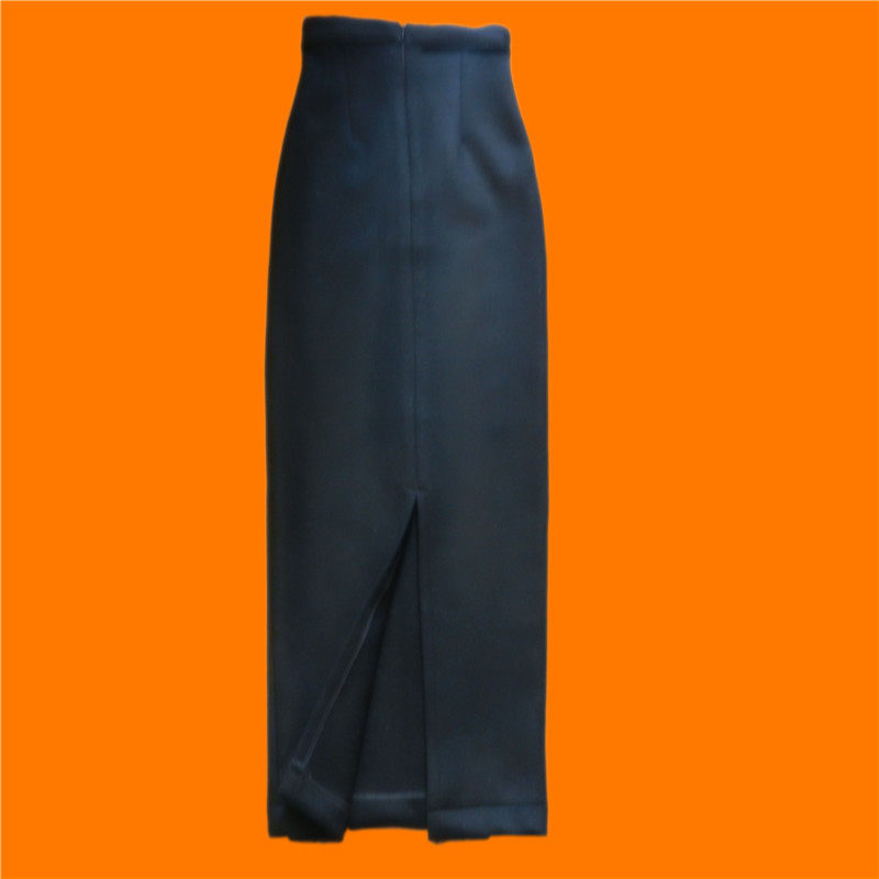 冬季加厚保暖纯黑色毛呢后开叉高腰包臀半身长裙复古侧开叉一步裙