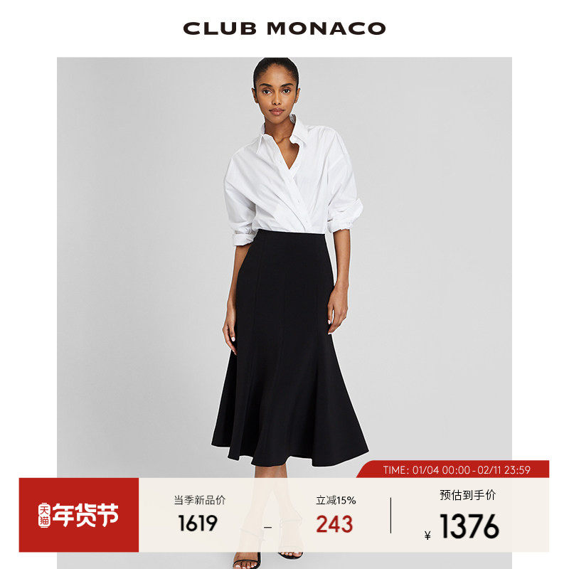 明星同款 CLUB MONACO女装淑女赫本风鱼尾包臀半身长裙
