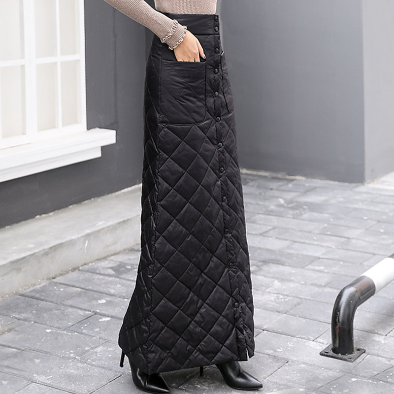 冬天裙子加厚保暖羽绒棉半身裙一片式裙修身长款一步包臀半身长裙