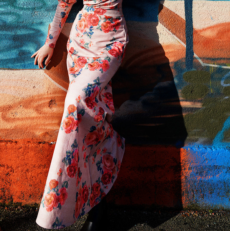 shemoda御姐风个性印花时尚套装女深V领吊带背心高腰包臀半身长裙