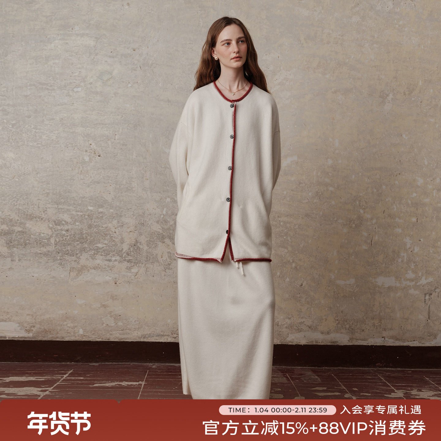 竹依依新款高级感100%绵羊毛套装女秋冬季开衫毛衣+包臀半身长裙