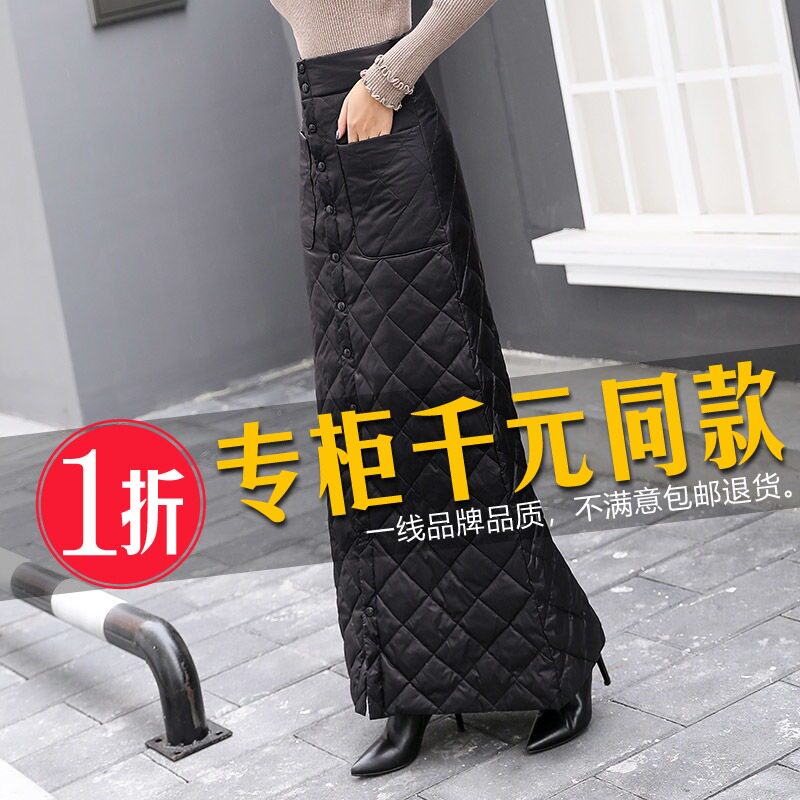 一片式裙冬天裙子加厚保暖羽绒棉半身裙修身长款一步包臀半身长裙