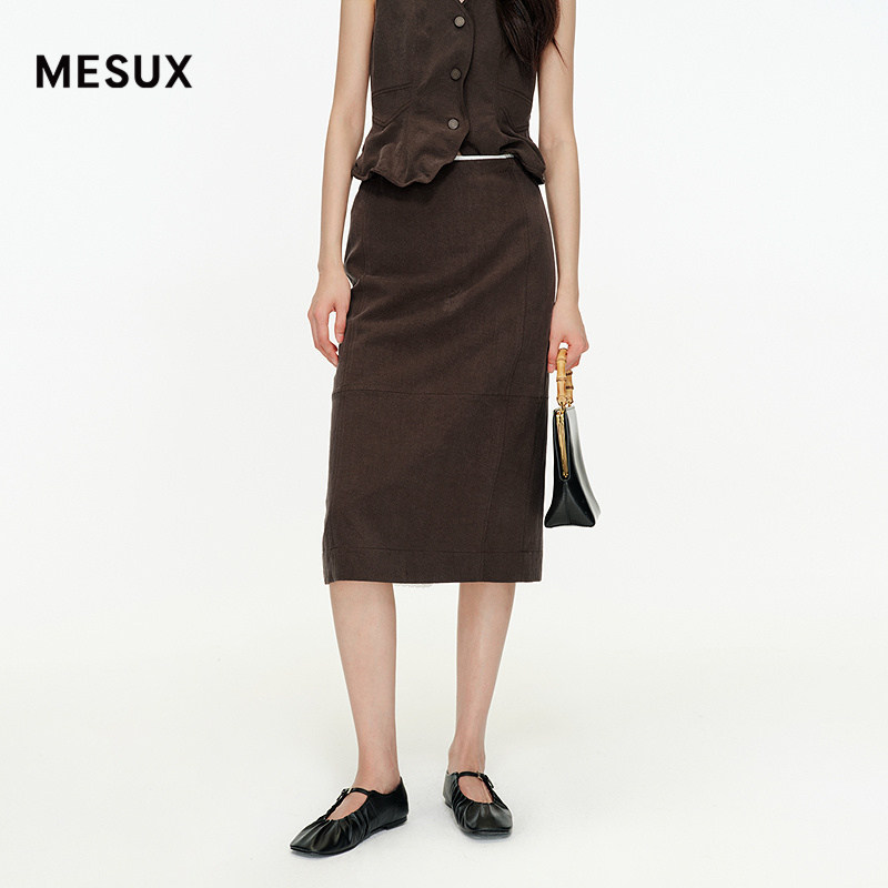 [博主同款]MESUX米岫25秋[乌木系列]直筒包臀半身长裙MNFUS406